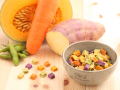 【わんこのサラダ《ミックス》】には、バランス良く自家栽培の野菜を混合しています。 良質な有機野菜を一度、ペースト状に加工してありますのでワンちゃんのお腹にも安全です。 塩分もゼロで、その繊維質は腸に良いと言われています。 健康成分を多く含んだ野菜ミックスは、肉類やカロリーを控えたい時の栄養源としても、もってこいで、 食の細いワンちゃんの食欲増進にも効果があります。